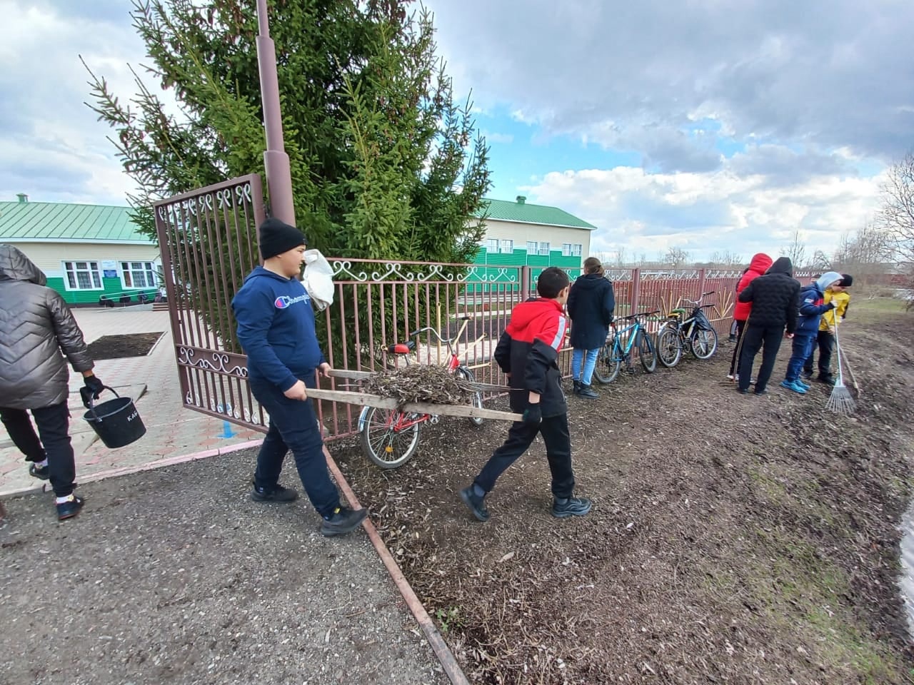 А 15 апреля обучающиеся 1- 11 классов приводили в порядок школьную территорию: собирали мусор, подметали участки. Совместными усилиями школьная территория преобразилась, посвежела. Субботники учат детей элементарным трудовым навыкам, дисциплинирует их. Они положительным образом влияют на детей, заставляют задуматься о необходимости соблюдения порядка.