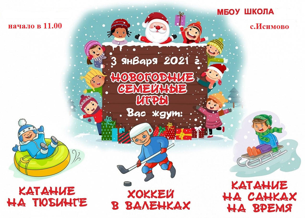3 января в 13.00 в МБОУ СОШ с.Исимово состоятся Новогодние семейные игры -2021 (школьный этап) среди 1-4 классов.