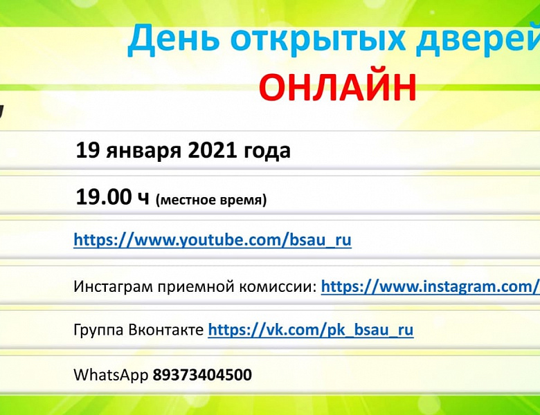 19 января БГАУ проводит онлайн "День открытых дверей"